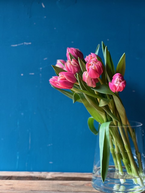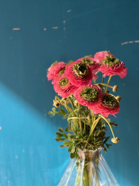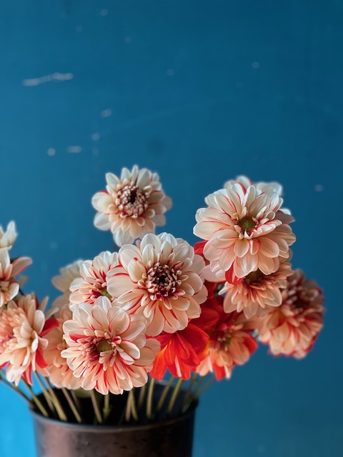 ピンクのバラやダリアを入れて