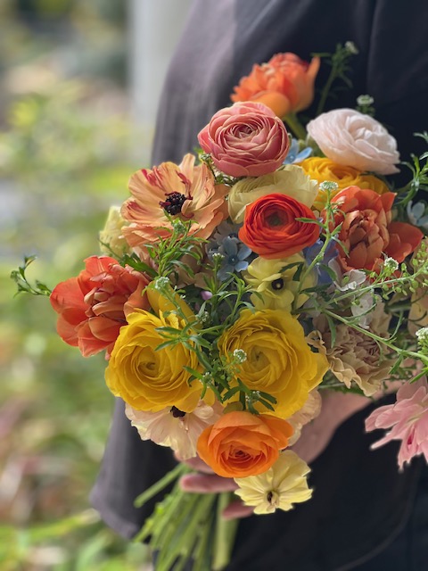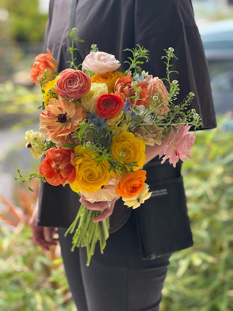 春花材でカラフルなブーケを